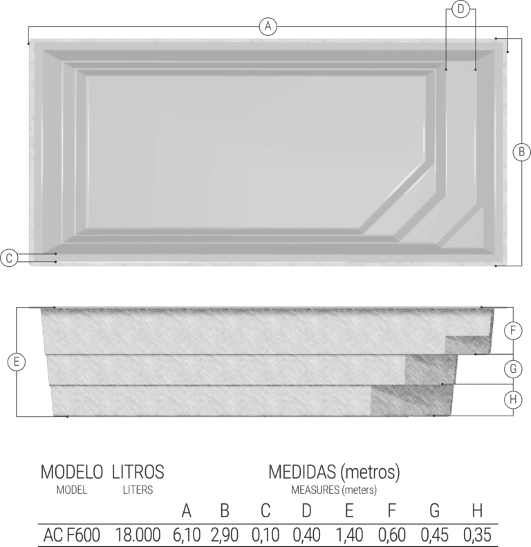 Com linhas contemporâneas e design sofisticado, a piscina Acapulco integra uma ampla área de nado e um lindo banco aconchegante. A leveza das suas linhas de design se fundem com os degraus de acesso – fazendo dela uma piscina moderna e perfeita para completar seu espaço de lazer. Está disponível nas cores azul e branca.